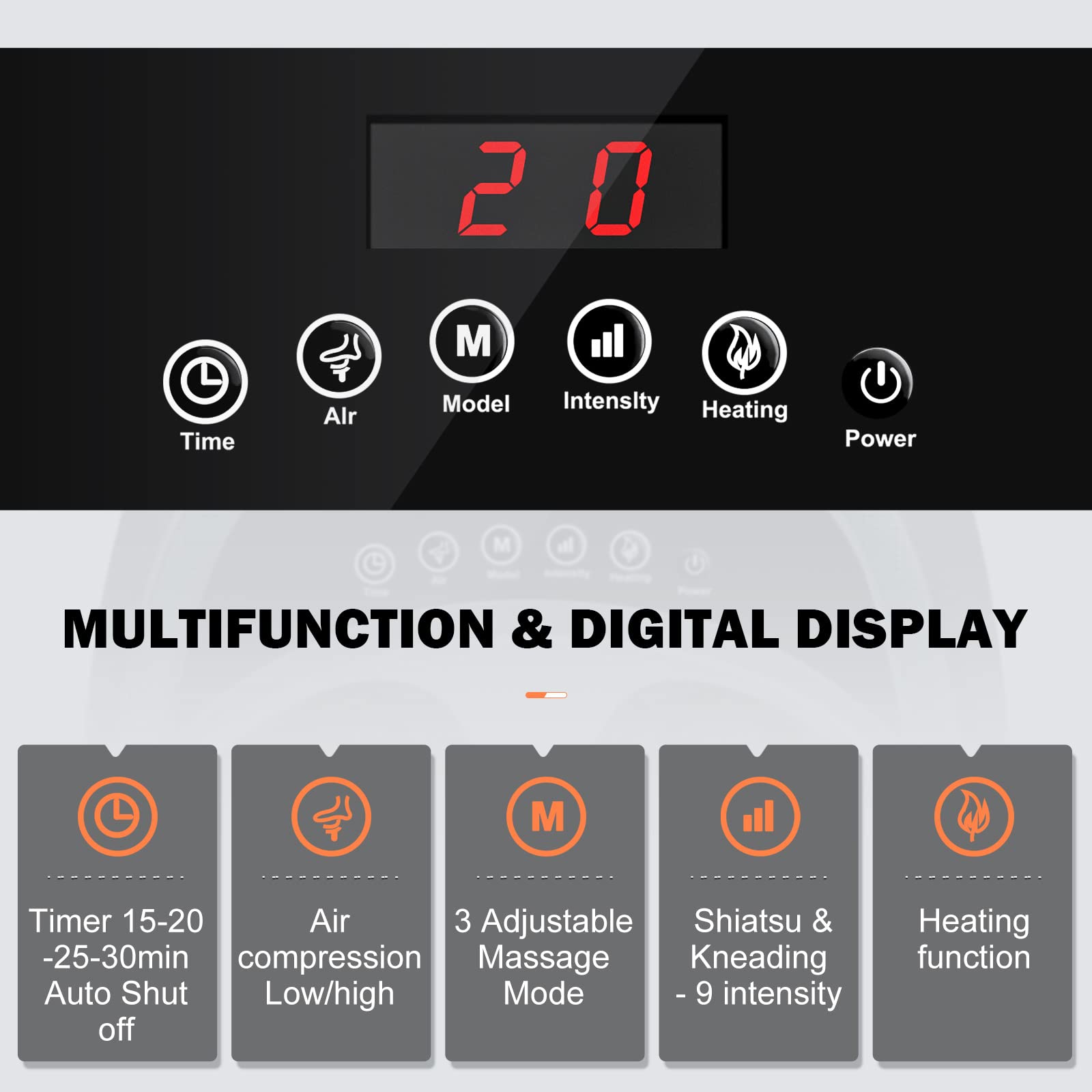 EASY TO USE: The Visualization screen helps you adjust the intensities and modes every time easily to ensure your experience in massage. There is a multi auto-off time setting-15/20/25/30 minutes. More choice than other feet massage machine, very convenient for the elderly.